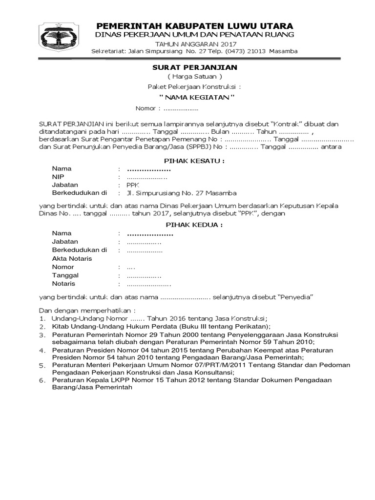 Contoh Surat Perjanjian Kontrak Pekerjaan Konstruksi Surat Lamaran Kerja Desain Contoh Surat Dz8vxxepkm